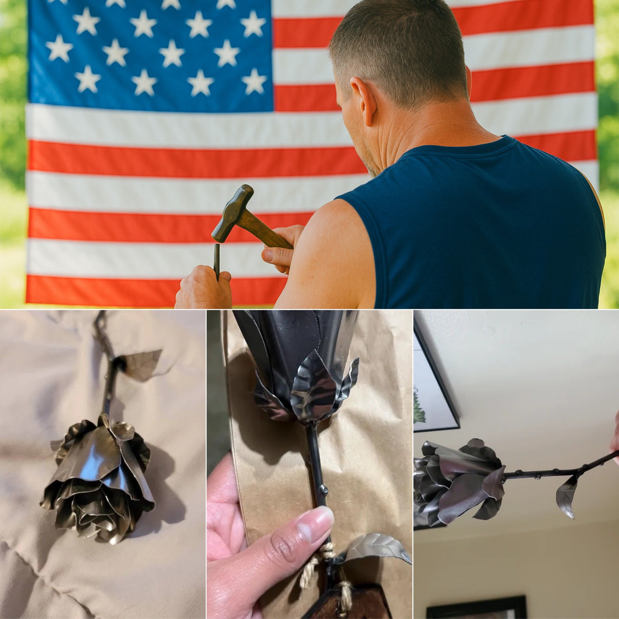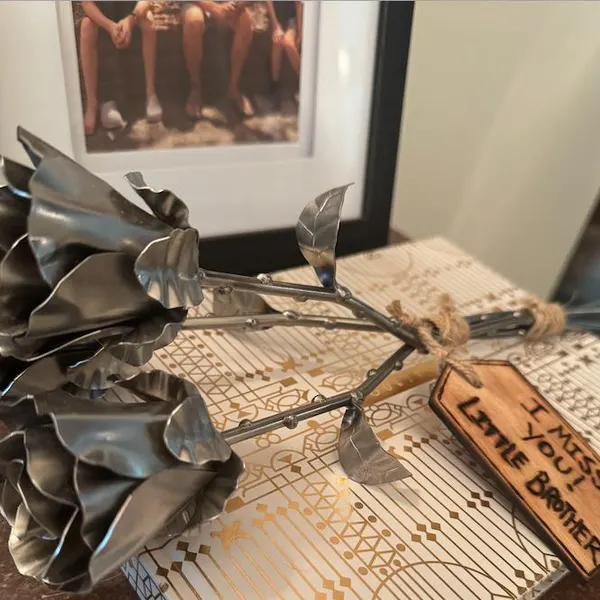 Each rose is handcrafted from solid metal, heated and shaped by fire, then polished to a soft, timeless shine. It’s not just a flower — it’s a symbol of love that never fades.